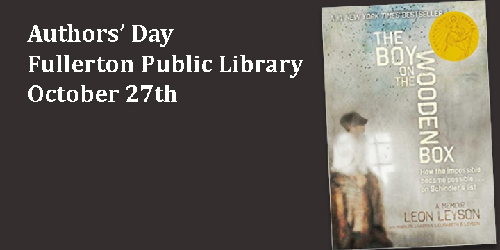 Elisabeth Leyson, wife of Leon Leyson represents Mr. Leyson at the Fullerton Public Library Authors’ Day, October 27th from 11:00 AM to 5:00 PM. Location: 353 W. Commonwealth Ave., Fullerton, CA 92832, Phone: (714) 738-6334.