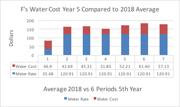 Your bi-monthly water bill consists of a fixed charge for the meter plus a pass-through charge for the gallons of water you use. Calculations of bills for several users indicate increases ranging from 70% to nearly 185% by the year 2024. One resident will see his bi-monthly bill go from $50 to $138 even as he conserves water use.
