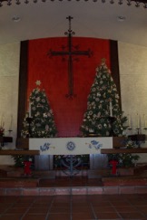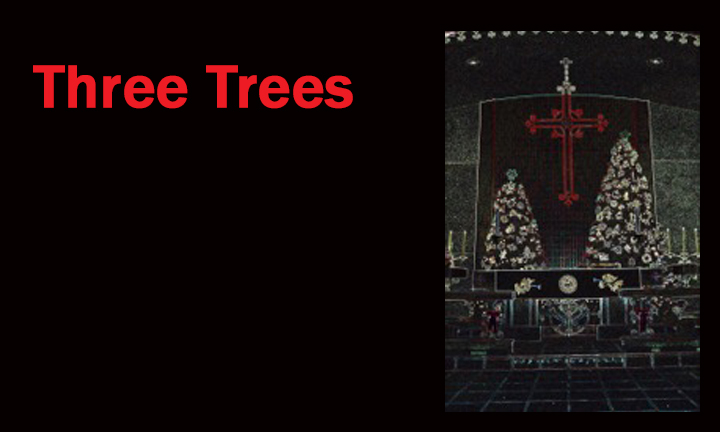 Three trees embrace the altar: One stretching heavenward, verdant, magnificent, proud; The second, the shorter One, clinging mother earth; The third, floating above, The Cross, The Constant Reminder.