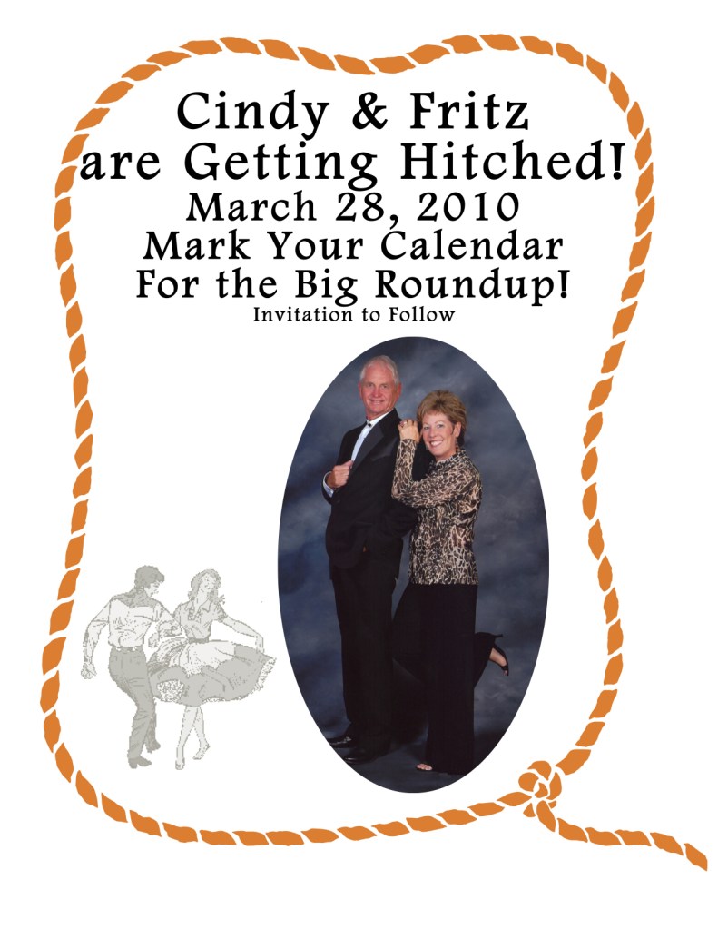 The invitations were out, we’re Getting’ Hitched March 28, 2010. We had sent pre-notices a couple months before to get on calendars of a couple hundred family and friends and such.