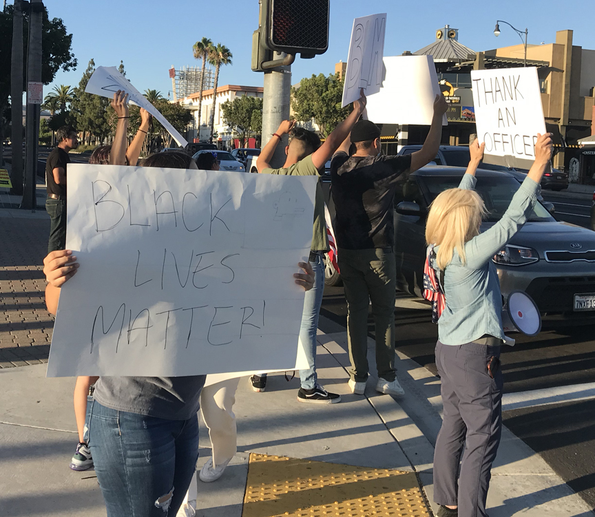 It was not a protest but a chance to show we honor our police and to make people aware that we want our police to know we “got their backs.” About 30 of us proudly displayed our nation’s flag and signs to the honking support of drivers as they passed by.