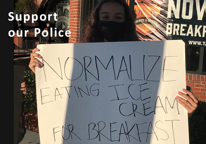 “Normalize Eating Ice Cream For Breakfast” — the most unique sign displayed yesterday at our Back the Blue rally in Brea. We were at the corner of Brea Blvd and Imperial Highway for two hours standing up for our police.