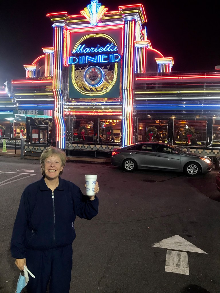 Dinner at Marietta Family Diner at midnight, January 3, after arriving at Atlanta airport.