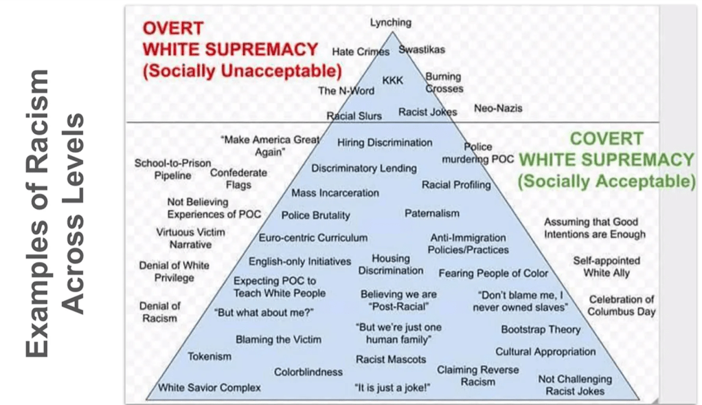 Until yesterday or the day before, or the day before that, someone decided we are racist and created barriers that are false. Levels of Racism are untrue. Just be me saying this I am deemed racist!