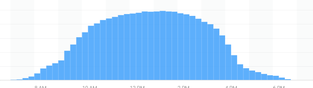 The day before they produced 24 kwHr of electricity-the sun was delightfully shining all day-I need several sunny days to make up for cloudy days.