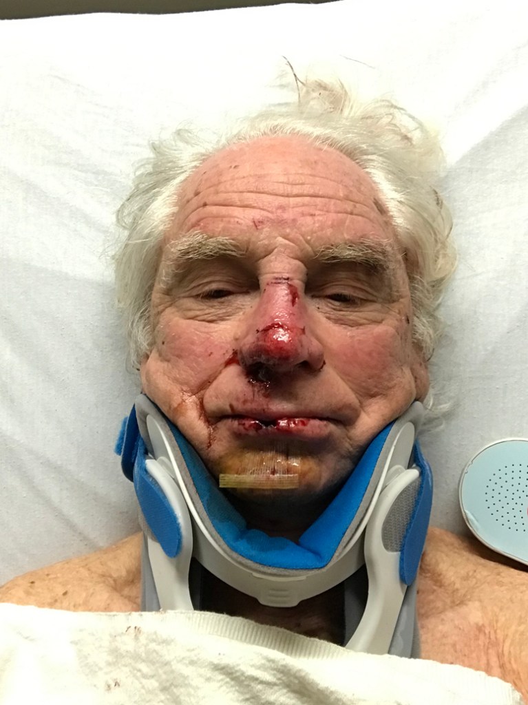Last year at 83, I fell face-first onto the trail. Going from extremely bright sun into a dark tunnel, my front wheel caught in a grove and I went over the handlebars, hitting the pavement face first. Fortunately my helmet visor took the brunt of the fall, probably saving me from a broken neck. Paramedics took me to the hospital and I stayed overnight while doctors, nurses and finally, a plastic surgeon fixed my face. Nothing else was broken—other than my pride.