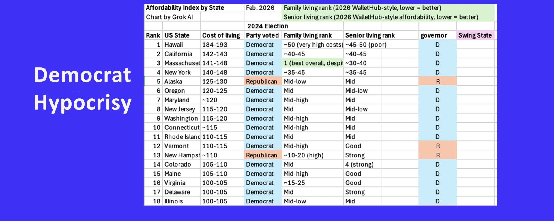Cost of living is highest in States governed (poorly) by Democrats. How can Democrats campaign on affordability?