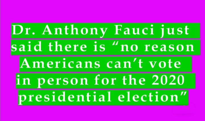 National Institute of Allergy and Infectious Diseases Director Dr. Anthony Fauci said this week there is “no reason” Americans can’t vote in person for the 2020 presidential election, so long as voters follow proper social distancing guidelines amid the coronavirus pandemic. “I think … Continue reading August 14, 2020